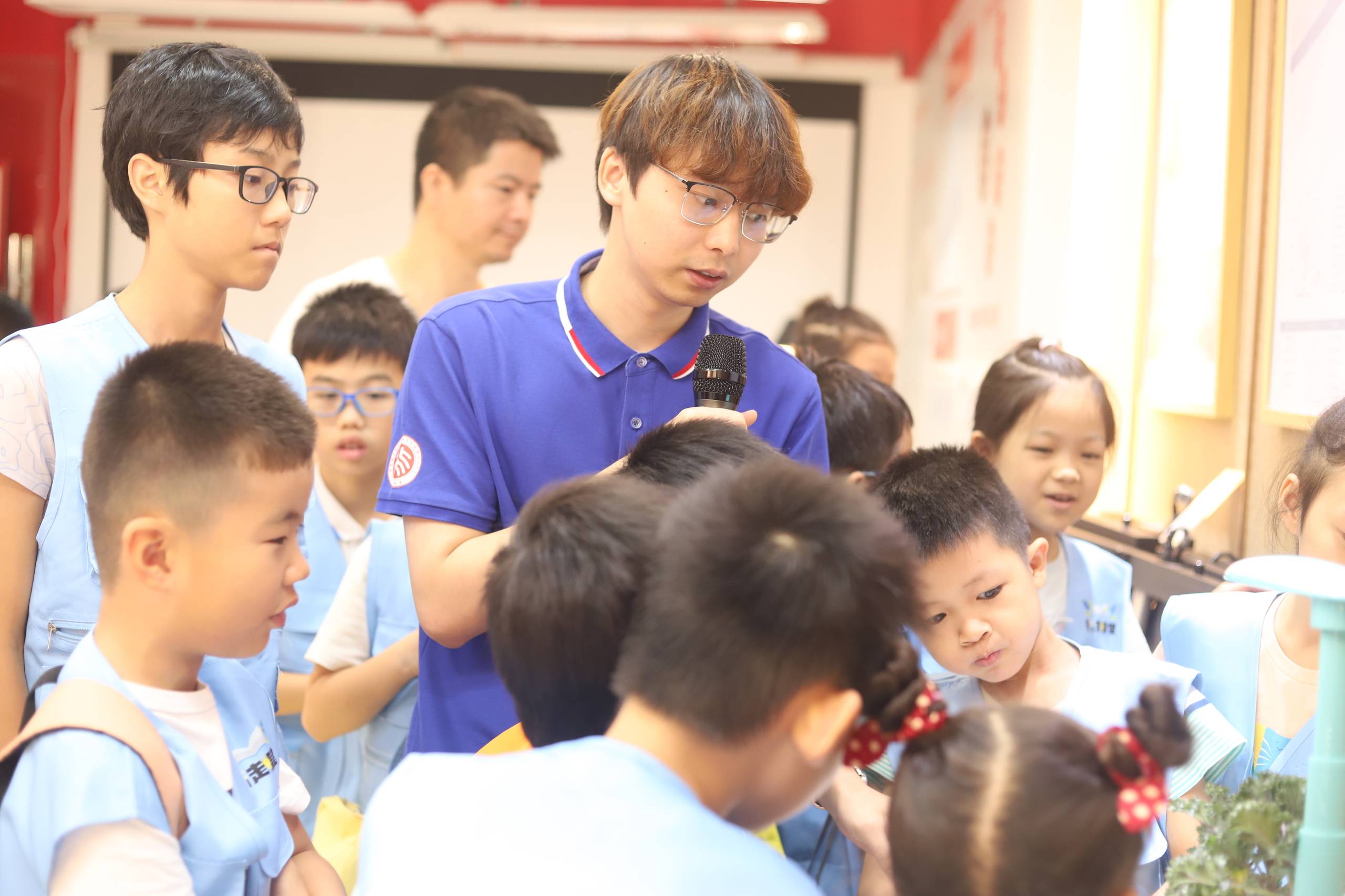 在LED展厅,北大光电研究院科普老师以“什么是光”切入详细讲述照明的发展史,帮助同学们拓展“光电”科学知识。现场气氛活跃,同学们认真听讲、踊跃提问。