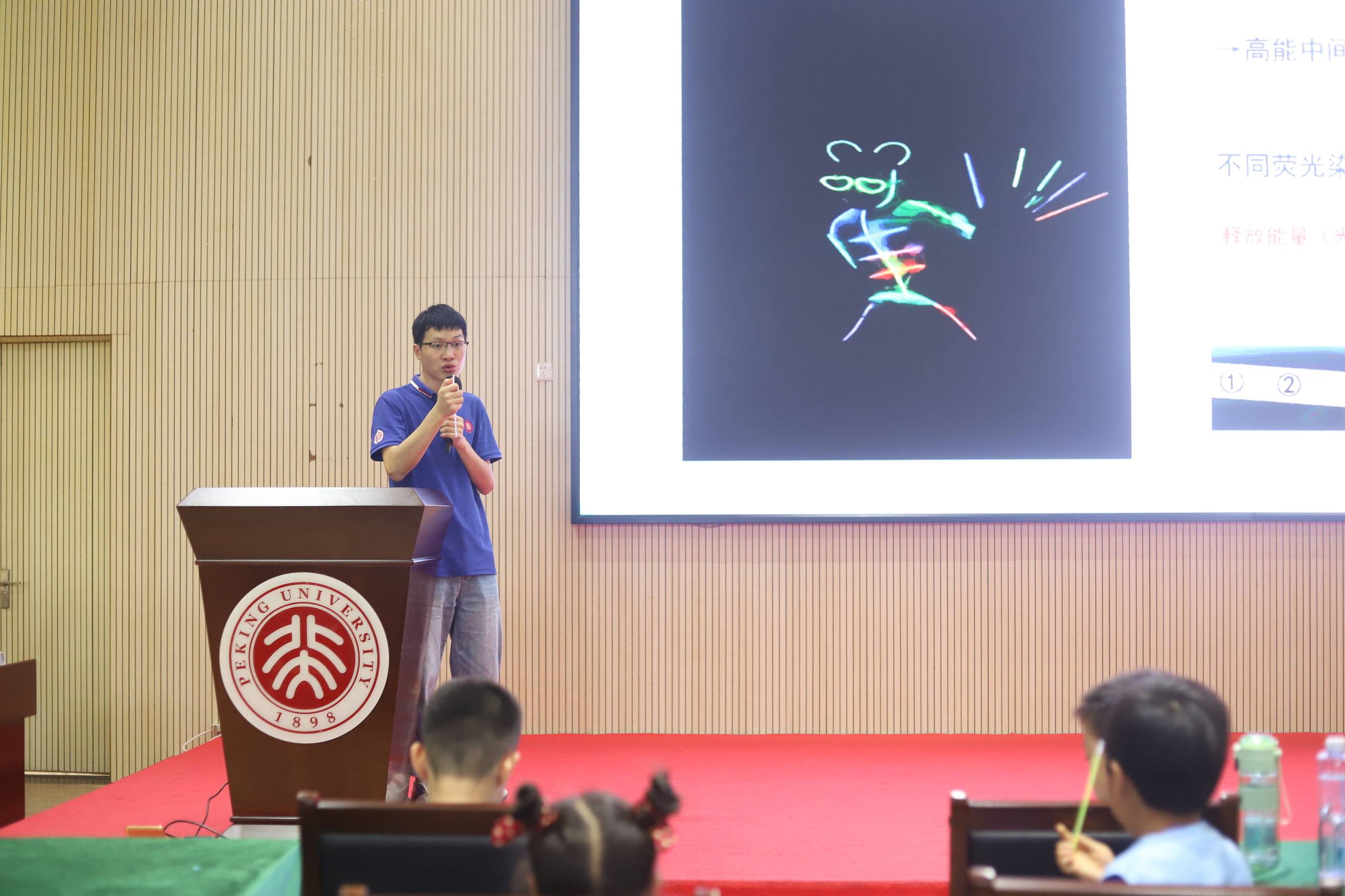 北大光电研究院谢胜杰老师以“什么是光”切入讲座内容,详细讲述光的产生,让同学们进一步了解七种发光类型,帮助同学们拓展“光”科学知识。现场气氛活跃,同学们认真听讲、踊跃提问。