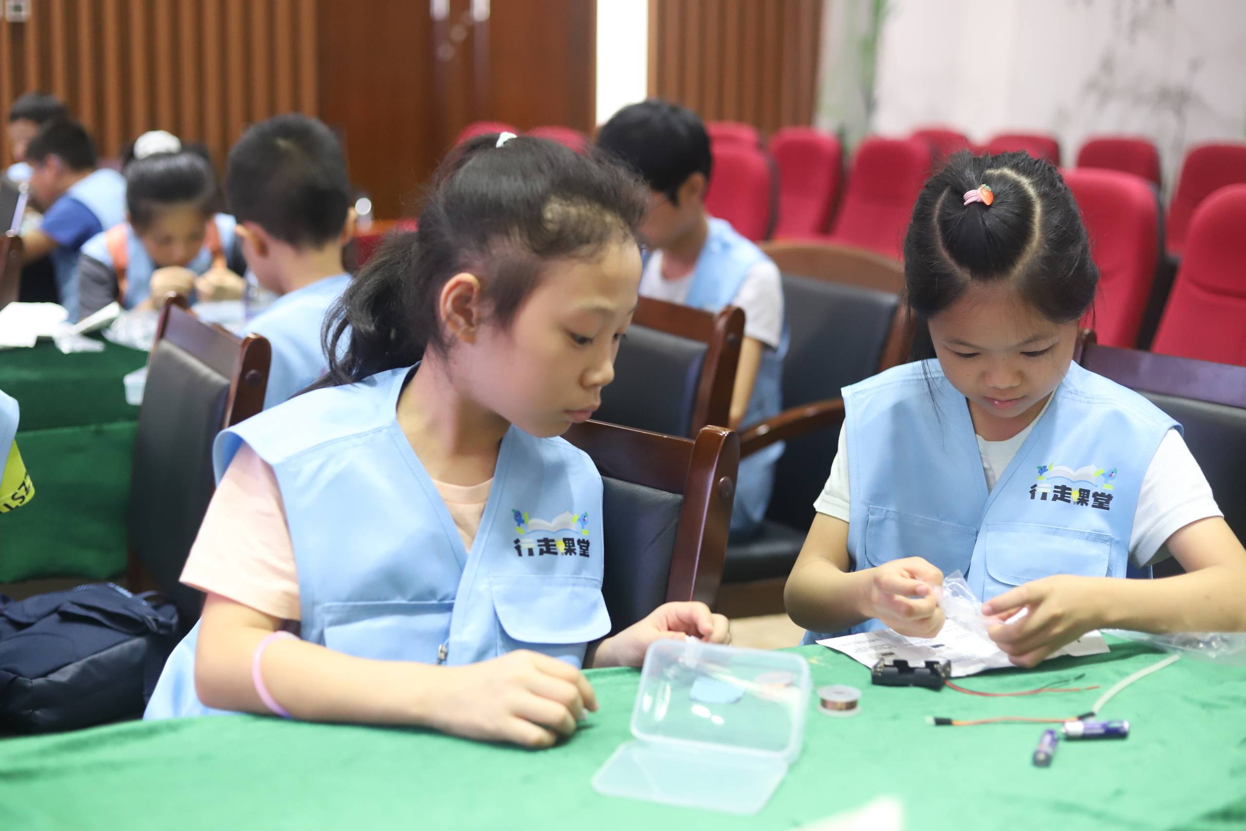 在科普实践小课堂,北大光电研究院谢胜杰老师以“电生磁、磁生电”切入实验,通过电磁效应隔空点亮灯泡引起同学们的兴趣,并指导同学们自己动手完成隔空点亮灯泡实验。